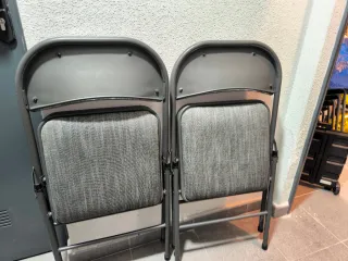 Se venden 2 sillas plegables (10€ cada una). Es perfecta para espacios pequeños. - Estructura metálica resistente. - Asiento y respaldo de cuero sintético. - Diseño compacto y fácil de guardar.