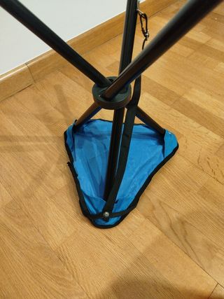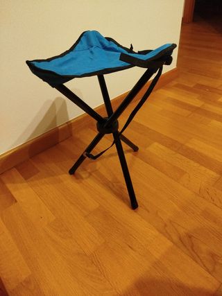 Tamboret trípode portàtil plegable de lona i potes d'acer i una tira per portar-lo penjant. El seient i les potes estan com nous però els topalls del final de les potes estan una mica gastats. Aprox 550g i 30x30x43 cms ---------- Taburete trípode portátil plegable de lona y patas de acero y una tira para llevar lo colgando. El asiento y las patas están como nuevas però los topes del final de l'as patas estàn un poc gastados. Aprox 550g y 30x30x43 cms