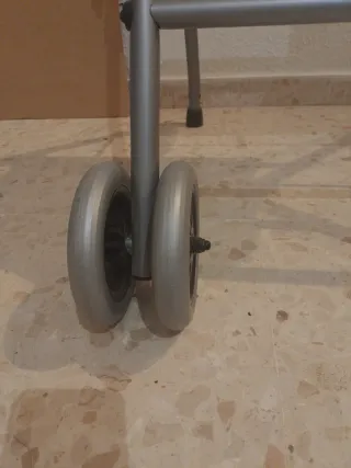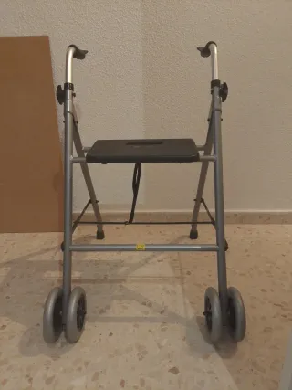 Andador con asiento incorporado, ideal para facilitar la movilidad. - Estructura principal de metal. - Asiento y empuñaduras de plástico. - Plegable.