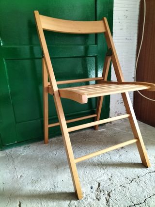 Preciosa silla plegable de madera, ideal para espacios pequeños. Se encuentra en buen estado, aunque presenta algunas marcas de uso. - Plegable para fácil almacenamiento. - Estructura robusta. de madera aprox 40 ancho fuerte y resiwtente. para cocina salon habitacion comedor bajo o cualquier otro uso banquets asiento taburete