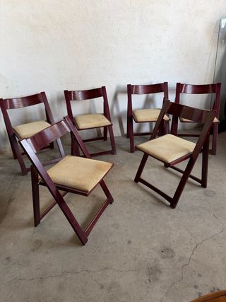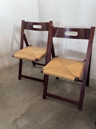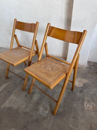 Se venden 5 sillas plegables de madera maciza. Están en buen estado. Son resistentes y fáciles de guardar. - Ideales para cualquier espacio. - Diseño clásico y elegante. - Perfectas para uso diario.