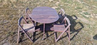 Mesa y 2 sillas plegables de madera para balcon.