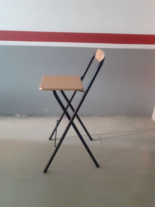 taburetes plegable, ideal para espacios pequeños. Son fáciles de guardar y transportar. - Estructura metálica negra resistente. - Asiento de madera color beige. - Perfectos para usar como asiento extra, tan apenas sin uso .