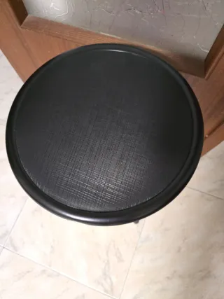 Taburete plegable con asiento redondo nuevo a estrenar. Tengo en blanco y negro. Dispongo de varias unidades. - Estructura metálica. - Asiento de tela.