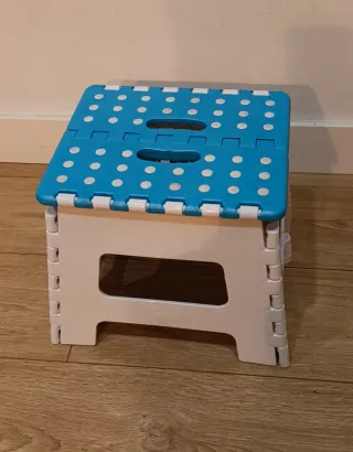 Práctico banquito plegable con un diseño divertido para los más pequeños. - Superficie con puntos blancos. - Asas para facilitar su transporte. - Estructura robusta. Envio, o entrego en mano
