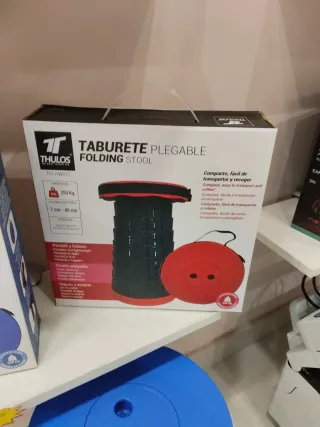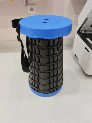 Taburete plegable portátil y ligero, ideal para llevar a cualquier parte. Su diseño permite abrirlo y cerrarlo rápidamente. Venta por cierre del negocio - Capacidad de carga: 250 Kg. - Altura ajustable: 7 cm - 45 cm. - Diseño plegable. - Seguro y estable.