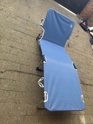 La compré por amazon y no la he usado. Está nueva y se puede lavar la funda. Muy práctica y cómoda. Las medidas que pongo son desplegada