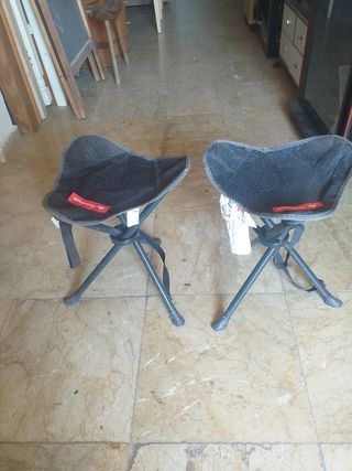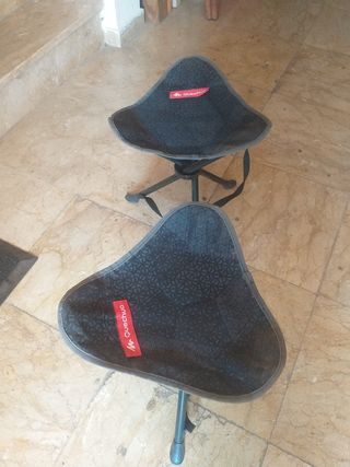 Dos taburetes plegable pequeños, pará viaje ideal pesan poco tres patas hierro y lona, cómodo para llevar a cualquier sitio medidas alto 0'40 peso 1,10kg seminuevo a buen precio, se vende tal como está " DECATHLON "