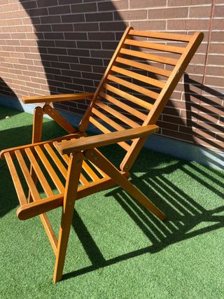 Hamaca plegable de madera. La he tenido que reparar, de ahí las marcas que se pueden ver en la última foto, pero funciona perfectamente. La tengo en Extremadura pero la podría entregar en Móstoles.