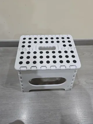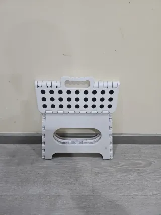Práctico taburete plegable, ideal para tener a mano en casa. Su diseño permite guardarlo fácilmente. - Fabricado en plástico resistente. - Color blanco.