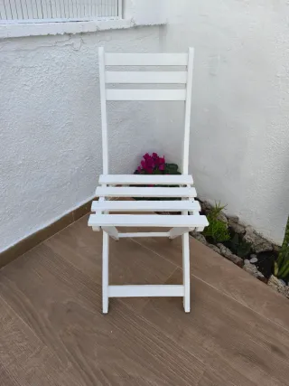 Usadas, pero bien conservadas. Madera de Teca. Muy dura y especial Exteriores. Muy cómodas y resistentes. 40€ Unidad. Hay 3 Unidades Silla de jardín plegable, perfecta para exteriores. Su diseño de madera le da un toque rústico y natural. Las 3 UNIDADES 110€. - Estructura de madera resistente. - Diseño plegable para fácil almacenamiento. - Listones en el asiento y respaldo.