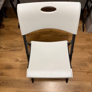 Silla plegable de la marca Lifetime. Su diseño es práctico y funcional. - Asiento y respaldo de plástico. - Patas y estructura de metal.