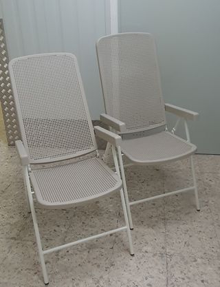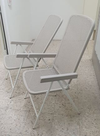 Vendo dos sillas plegables de jardín Ikea modelo Torparö. Son de plástico y metal, en color beige y blanco. Están en buen estado. - Diseño plegable para fácil almacenamiento. - Perfectas para terraza o jardín. - Cómodas y resistentes. - Por su peso son adecuadas para lugares ventosos. Precio original 55€ cada una. En óptima condiciones.