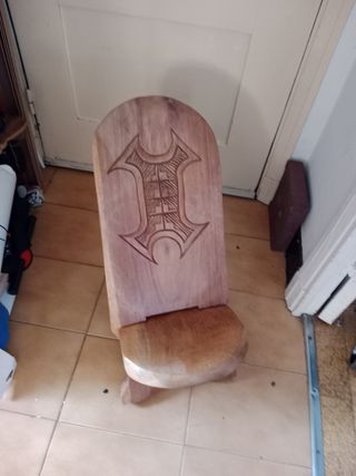 Preciosa silla plegable de madera, con un diseño étnico tallado. Es una pieza única, ideal para decoración o uso diario. - Diseño único tallado a mano - Plegable para fácil almacenamiento - Madera resistente y de alta calidad