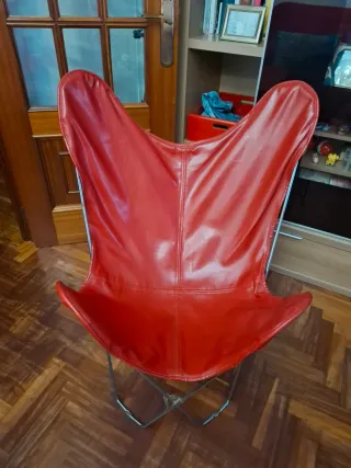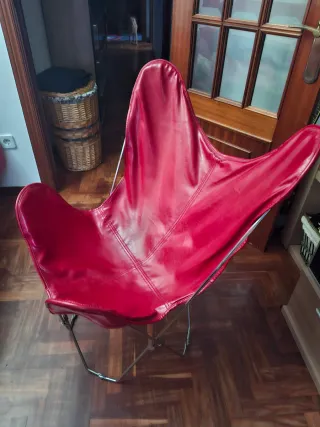 Elegante silla mariposa con un diseño icónico. PRECIO NEGOCIABLE - Revestimiento de cuero rojo. - Estructura de metal. - Cuero extraible. - En muy buen estado. - Plegable.