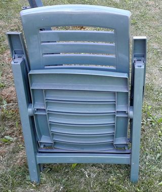 Se vende tumbona de plástico para jardín o terraza. Es de color verde y está en buen estado, aunque tiene algunas marcas de uso. - Ideal para relajarse al aire libre. - Plegable para facilitar su almacenamiento. - Fabricada en plástico resistente. - Son tres sillas