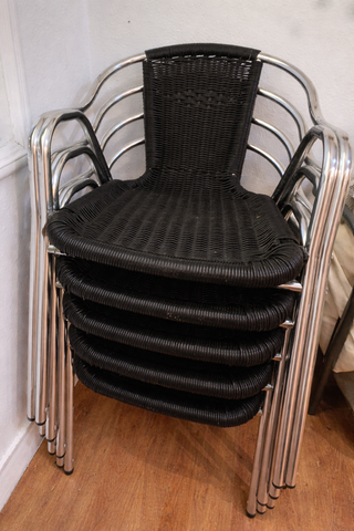 Silla de terraza de aluminio y ratán en color negro. Vendo 5 sillas por 100) - Modelo Hobeto 178091. - Peso: 3 kg. - EAN: 4979909904282.