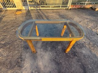 Elegante mesa de comedor con estructura de ratán en tono gris claro y superficie de cristal. - Diseño moderno y versátil. - Patas resistentes para mayor estabilidad. - Ideal para espacios interiores o exteriores cubiertos. Medidas 1m ancho y 2m de largo . 0'75alto . El transporte va a cargo del comprador. Está nueva . La vendo por mudanza y falta de espacio. Estoy junto a Grancasa