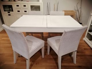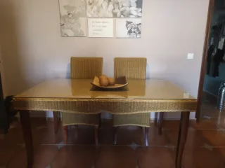 Conjunto mesa y 4 sillas madera y ratán