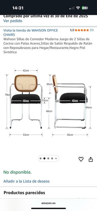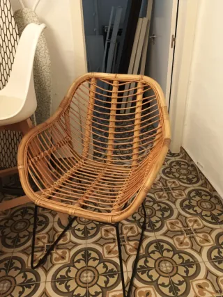 Se venden dos sillas completamente nuevas. - Estructura de ratán. - Patas de metal. Me costaron 160€ cada una, subo foto de la paguina donde las compre, y con oferta salen a 120€/u. Se notan muy firmes y resistentes, son de gran calidad.