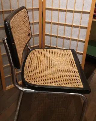 Silla de diseño. Marcel Breuer con asiento y respaldo de ratán. El ratán del respaldo necesita reparación. El precio es por una silla. Hay 2 disponibles.