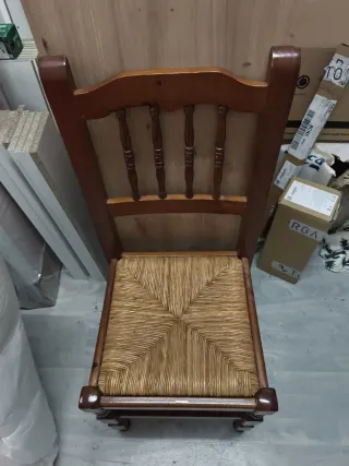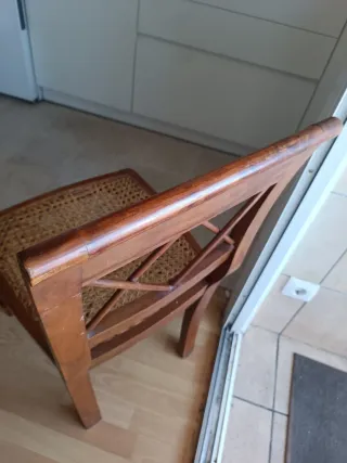 Silla de madera con asiento de ratán