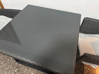 Mesa y 4 sillas terraza ratán y cristal