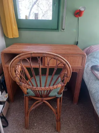 Escritorio y silla de ratán