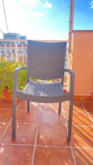 Conjunto de sillas de exterior de gran tamaño y cómodas. Se encuentran en muy buen estado. - Diseño de ratán. - Material de plástico resistente.