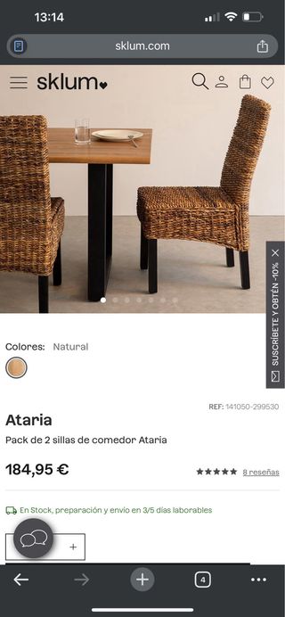 Silla ratan totalmente nueva, comprada hace tan solo un mes. Agotada en tienda