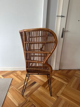 Este sillón de ratán es perfecto para añadir un toque acogedor a tu hogar o jardín. - Apto tanto para interior como para exterior. - Estructura de ratán y madera. - Cojín de asiento incluido en la venta (comprado aparte) - El precio actual en IKEA es de 79€ - Muy buen estado, poco uso. - Lo vendo por mudanza, ya que no cabe en la nueva casa. - Medidas incluidas en una de las fotos. - Solo venta en persona.