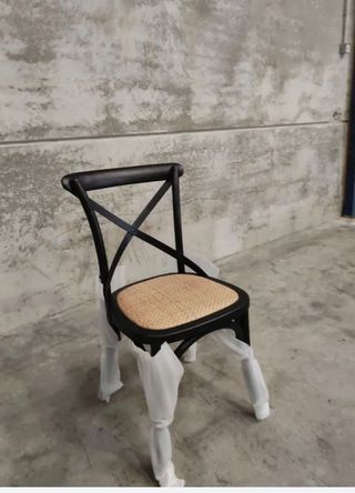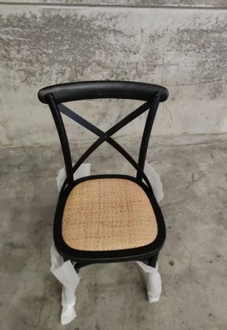 Silla de ratán con patas negras