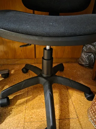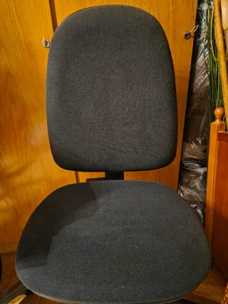 Silla de oficina con un diseño moderno y funcional, ideal para espacios de estudio o trabajo. - Asiento y respaldo tapizados en tela (Tiene alguna mancha, pero no se ve demasiado). - Altura ajustable. Medidas: - largo desde el suelo hasta el final del respaldo: 79-90cm - largo desde el suelo hasta el asiento: 45-56cm - ancho del asiento: 43cm