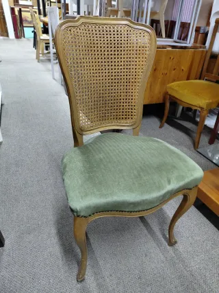 Silla Vintage Madera y Tela Verde