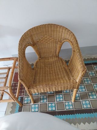 VENDO Silla de mimbre o ratán natural para aparador o decoración. Antigua y en perfecto estado. Buena calidad y cuidada. Ideal para terrazas, jardines, entornos de descanso, piscinas, etc. Vintage.