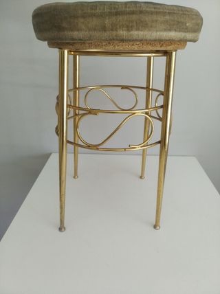 Taburete de metal con asiento de tela. Es un taburete robusto y de estilo retro. - Ideal para cocina o bar. - Estructura de metal resistente.