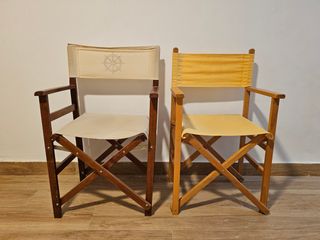 Silla tipo director de cine, con cierre de tijera. En buen estado. Se venden las dos juntas por 40€. PALABRAS CLAVE: silla tijera,silla tela,silla director de cine,silla vintage