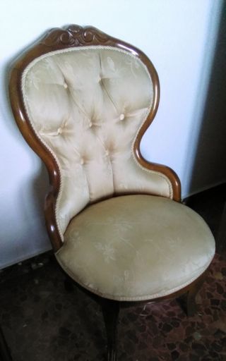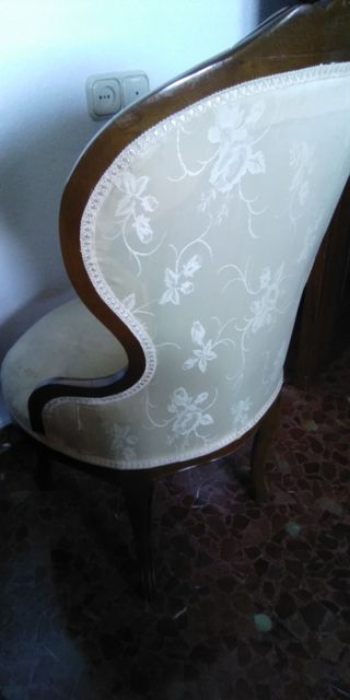 Conjunto de sillas antiguo , bonita estructura y tapizado. Una de ellas está algo inestable porque le falta un tornillo.