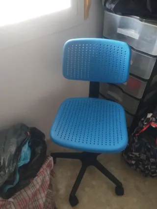 Silla juvenil de escritorio azul.