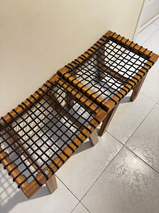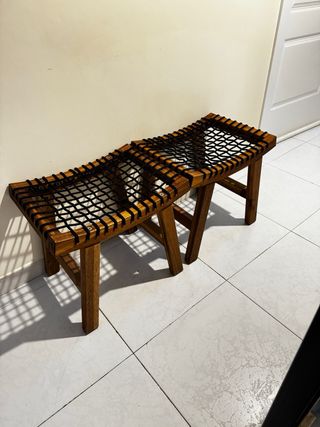 Descripción del Artículo: Se venden taburetes modelo STACKHOLMEN de IKEA, en color tinte marrón claro. Perfecto para usar como asiento extra, reposapiés o mesa auxiliar • Estado: Como nuevo. Muy poco uso y siempre bien cuidado • Diseño: Estructura robusta de madera y asiento trenzado con cordón negro. • Ventajas: Es ligero, fácil de mover y su diseño escandinavo aporta un toque moderno y cálido a cualquier espacio.