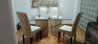Mesa de comedor cristal y piedra