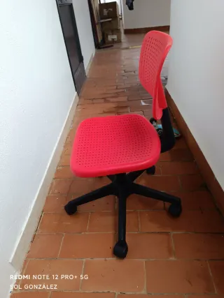 Silla roja regulable en altura y giratoria. Perfecta para estudio.
