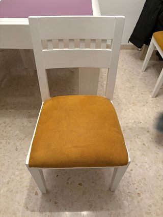 2 sillas blancas con asiento acolchado y patas de madera. No hago envíos, tendrían que venir a recogerla.