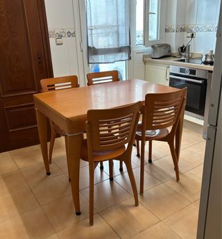 Mesa cocina extensible + 2 sillas + 3 taburetes
