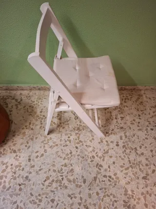 Silla plegable de madera con asiento acolchado. - Estructura de madera blanca. - Asiento de tela acolchado.