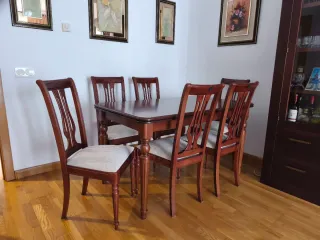 Mesa de madera maciza con 6 sillas
