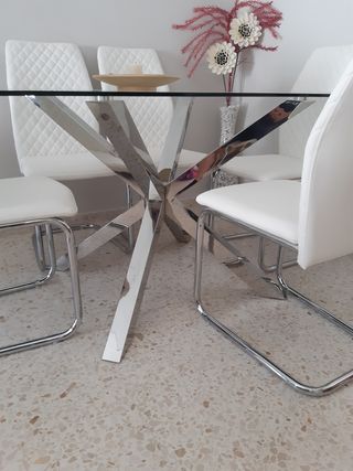 Mesa de cristal con muy poco uso, sillas de polipiel. Esta todo en perfecto estado.