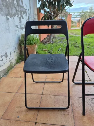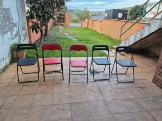 Conjunto de cinco sillas plegables, perfectas para cualquier ocasión. - Estructura metálica. - Asiento y respaldo de plástico. Se pueden vender por unidades o packs, se fijará precios