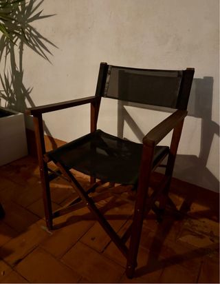 Silla de director plegable con estructura de madera. - Asiento y respaldo de tela. - Brazos de madera. -- 3 Unidades, c/u 30€ Precio en tienda 69€