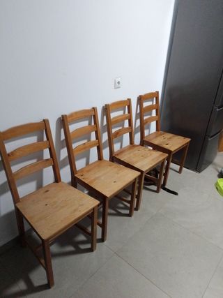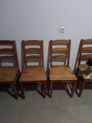 Conjunto de dos sillas de madera con acabado barnizado. - Estructura robusta de madera. - Diseño clásico y versátil. 12€ cada una. Negociables